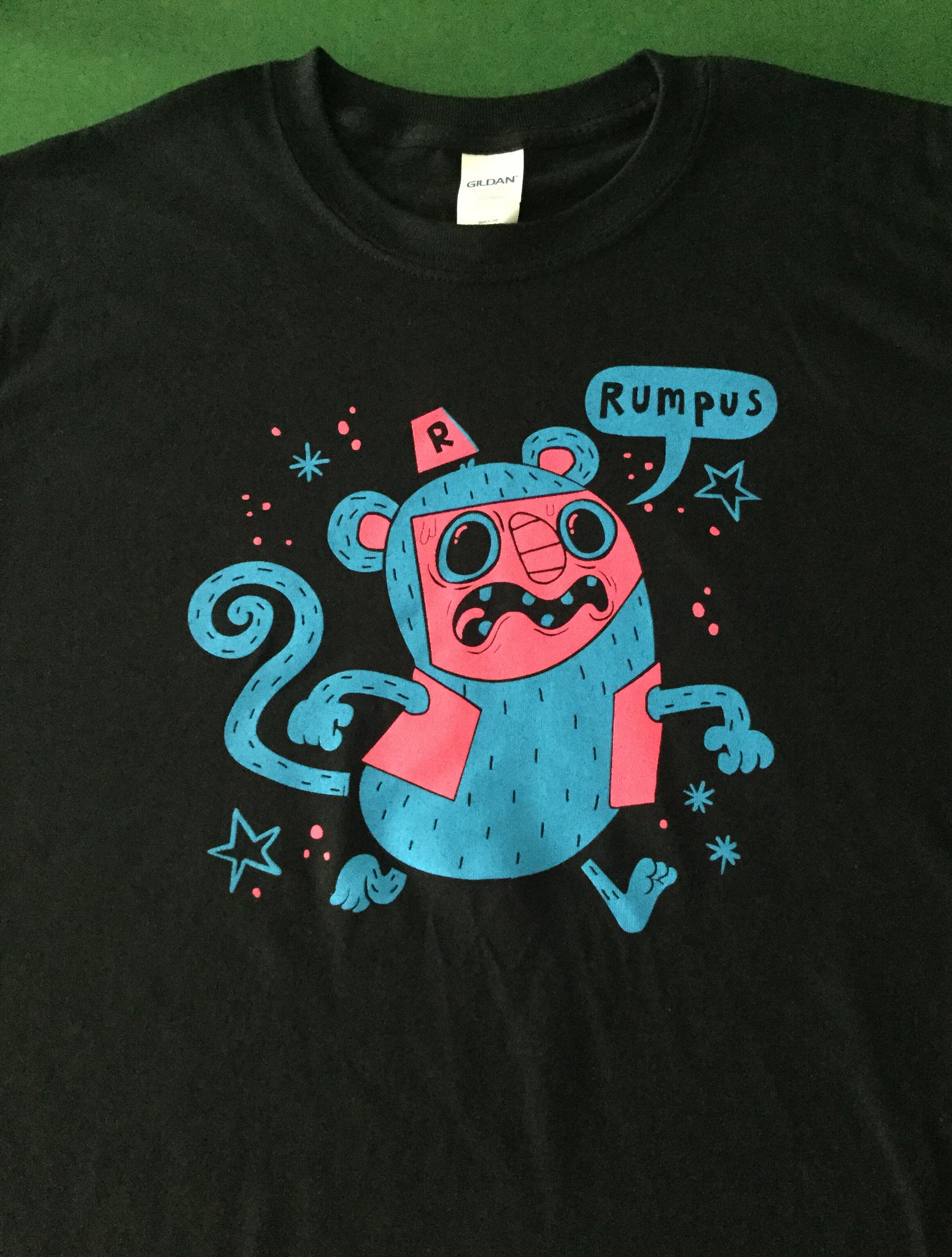 Screen-printed T-shirt featuring Barry Monkey from Rumpus Animation